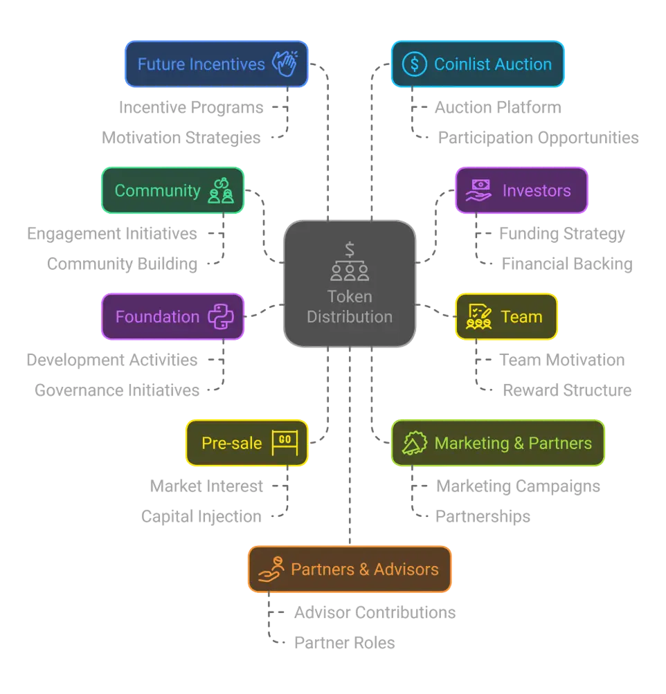 - Tokens set aside for pre-sales indicate a strategy to raise initial capital and gauge market interest.